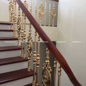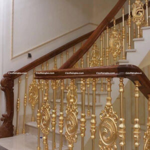 Lan can cầu thang nhôm đúc đẹp là sự kết hợp giữa chân cột đứng hợp kim nhôm mạ vàng và tay vịn gỗ tự nhiên. Mang đến cho ngôi nhà sự sang trọng và đẳng cấp. Sản phẩm phù hợp với biệt thự nhà ở cao cấp mang hơi hướng hiện đại.